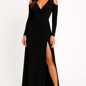 Step into refined elegance with this long evening dress, designed to enhance your silhouette effortlessly. The graceful front slit adds a contemporary touch to its classic design, making it ideal for formal events or romantic dinners.