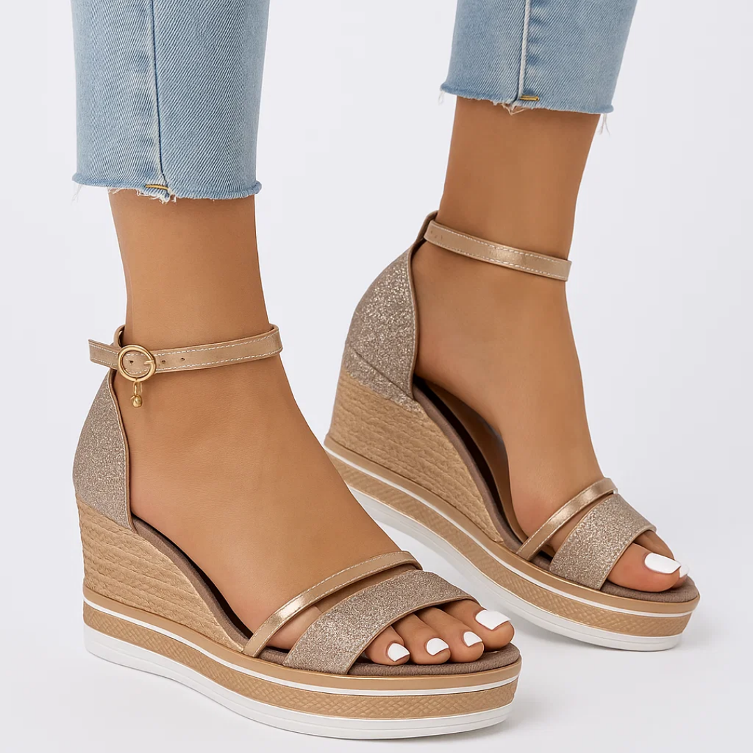 Women's glitter finish wedge sandals – Sparkle meets sophistication