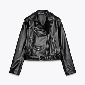 Women's motorcycle jacket made of PU leather with belt