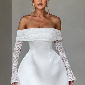 Women's Mini Lace Sleeve Dress With Off-Shoulder Design