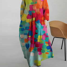 Celebrate vibrant individuality with this multicolour midi dress, perfect for sunny days, casual gatherings, or artistic settings. The loose-fitting silhouette and expressive palette make it a joyful addition to any relaxed wardrobe.