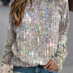 Women's Sequin Crew Neck Top | Long Sleeve