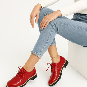 Their shiny finish catches the eye, while the laces ensure a personalized fit. The flat sole provides stable steps, and their versatile design pairs easily with various fashion styles.
