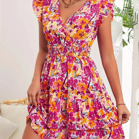 This women's short dress perfectly combines comfort and style. With its floral print and V-neck, it is ideal for relaxed vacation or party occasions.