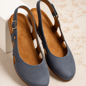 - Slip-on style with slingback strap for secure fit