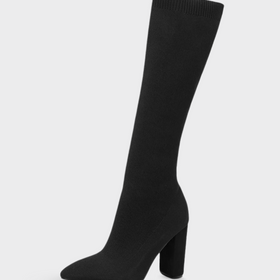 Women's Stretch Knit Knee-High Boots – Pointed Toe Sock Boots with Block Heel