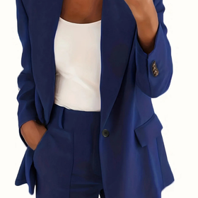 This pantsuit combines classic lines with a modern look. The tailored blazer and matching trousers create a stylish two-piece – perfect for business or formal occasions.