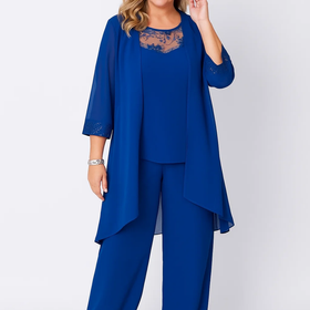 Step into sophistication with this three-piece formal set, thoughtfully created to deliver a polished, coordinated style for special occasions. The ensemble brings together a flowing jacket, sleek top, and wide-leg trousers, perfect for events, dinners, or formal gatherings.