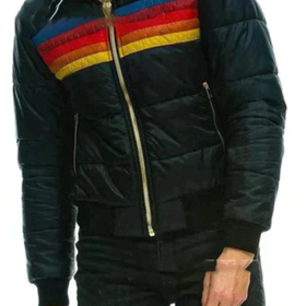 This women's quilted jacket combines a sporty silhouette with a nostalgic retro design. With colorful stripe details and a zipper, it provides a lively, modern look – ideal for leisure and outdoor activities.