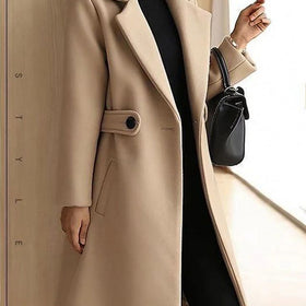 This women's coat in a classic cut with a tailored belt emphasizes the silhouette and gives a neat character. The single-breasted button placket and notched collar make the model suitable for both everyday and semi-formal outfits.